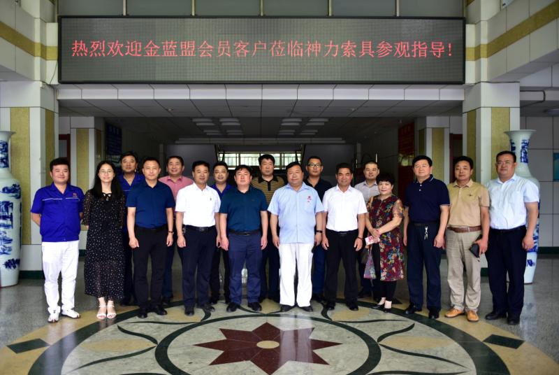 2019年6月25日上午9時,應公司董事長杜亞中先生邀請,金藍盟13家會員企業的董事長蒞臨山東神力索具參觀指導工作。群英聚神力,共商新發展,在本次活動中各會員客戶單位談發展論創新,互通觀念,增進了彼此間的了解。