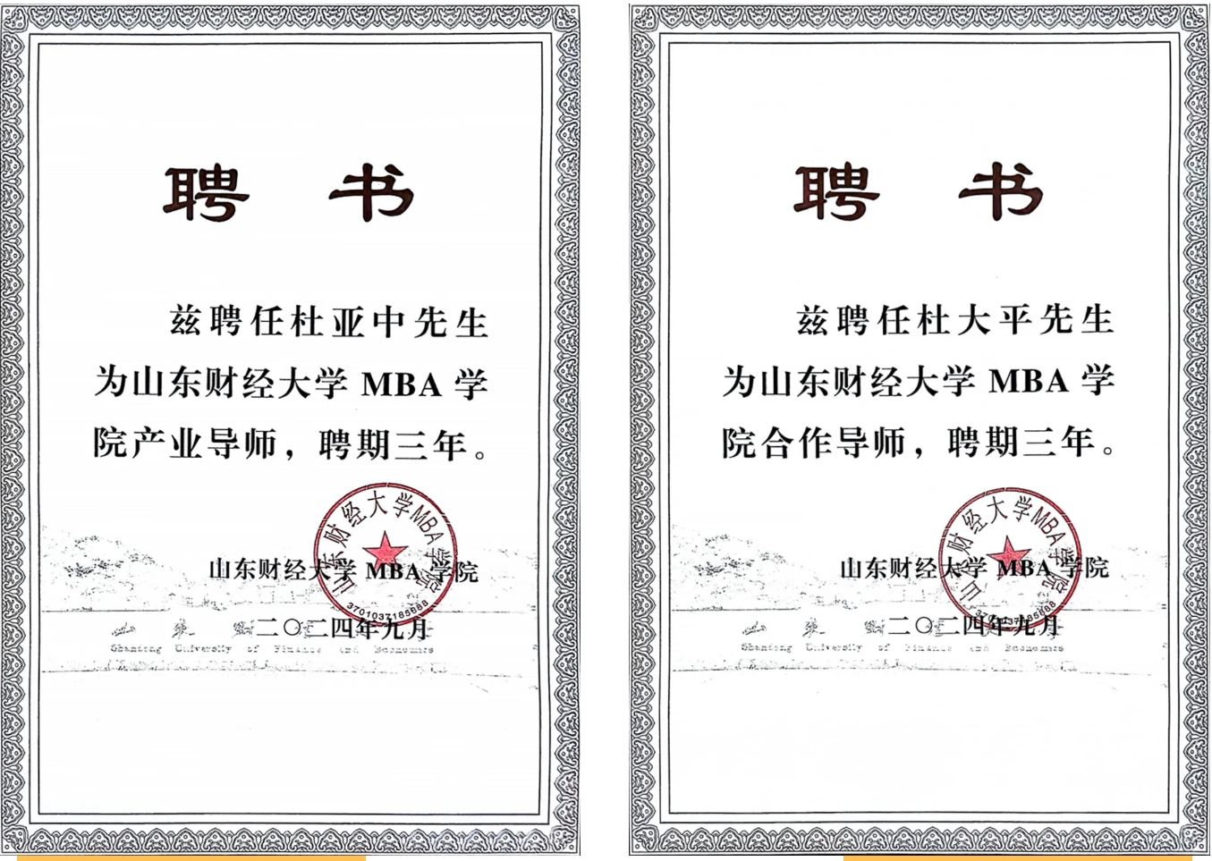 此次受聘山東財經大學MBA學院合作導師,是“產教融合新模式 校企合作育英才”的全新探索,兩代杰出企業家均表示將充分發揮“企業家導師”的獨特優勢,將企業實戰經驗與學術理論深度融合。董事長杜大平表示:“產學研合作是推動行業創新的關鍵,我將以企業真實案例為教材,幫助學生理解市場邏輯,培養兼具戰略眼光與執行力的復合型人才。”